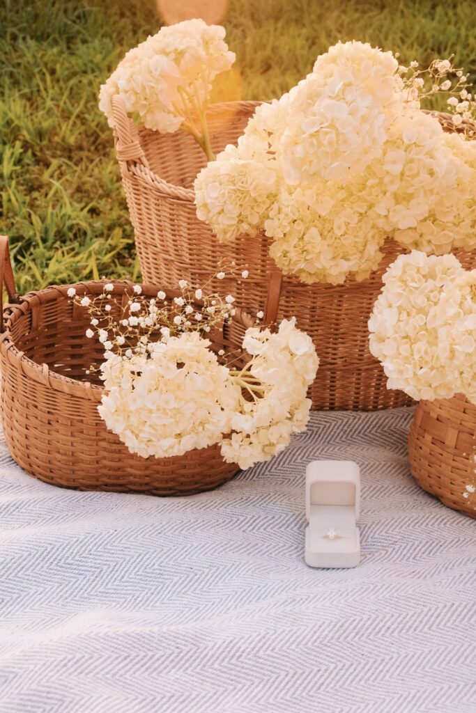 Baskets of hydrangeas overlooking Lake Red Rock at sunset. It was literally my Pinterest dreams coming to life. He absolutely crushed it.